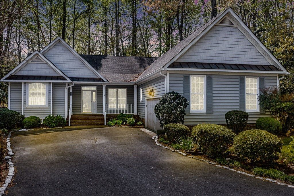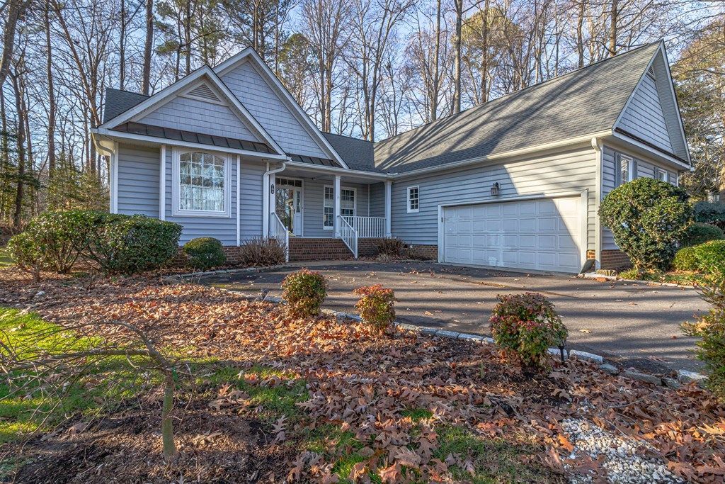 Welcome to the desirable Hills Quarters community in Irvington, offering maintenance-free living in a location where restaurants, shops, golf, and boating are all conveniently nearby. This single-story home is tucked away at the end of a quiet cul-de-sac, providing a sense of privacy and tranquility. As one of the original homes built in the neighborhood, it is surrounded by mature trees and backs adjacent to the Golden Eagle Golf Course, creating a peaceful and scenic setting. Step onto the covered front porch and into an inviting interior featuring cathedral ceilings and hardwood floors throughout. The home includes a dedicated office with glass French doors and built-in bookshelves, along with a spacious living area centered around a gas fireplace. Double doors open to the backyard creating an easy indoor-outdoor flow. Updates include brand new roof in 2026 and service HVAC. The kitchen has also been thoughtfully updated with granite countertops and all new appliances. The primary suite offers a generous sitting area, updated hardwood floors and multiple closets including his-and-hers walk-in closets and an ensuite bath with jetted tub, separate shower, and double vanity. Two guest bedrooms are located on the opposite side of the home, providing privacy, along with a full bath an attached two-car garage. Enjoy a backyard with large deck with views of the golf course and mature trees. Community amenities include a large pool, tennis and pickleball courts, and miles of walking trails, with lawn care, trash pickup, and more included in the HOA!